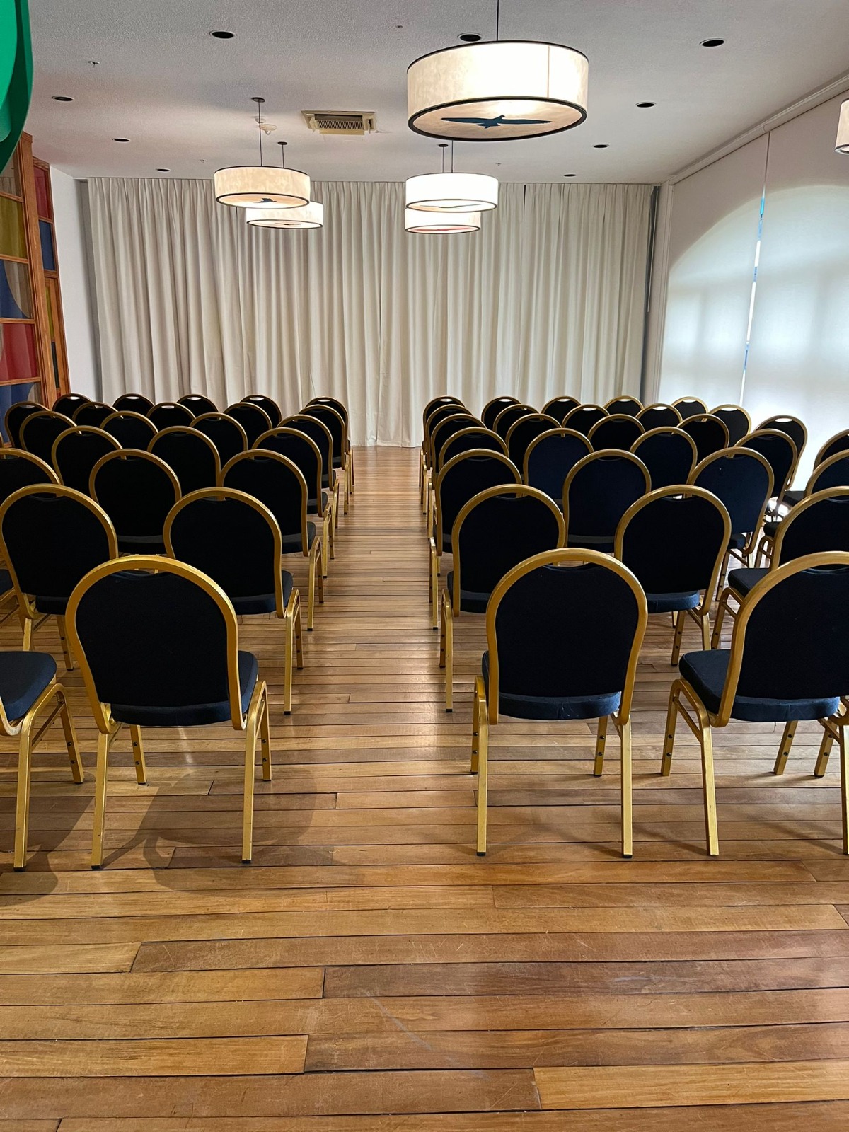 | Sala | Luz natural | Teatro | Imperial | Escuela | Banquete | Cóctel | U-Shape | m² |